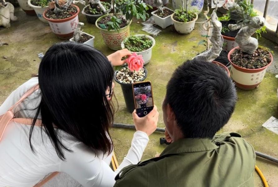 培训围绕手机拍摄技巧、直播话术设计、短视频文案撰写等实用内容展开。在巫西村、东老村特色盆景合作社,学员们从零开始学习,将直播间设在温室大棚,通过镜头展示盆景养护过程、特色造型。随着直播经验的积累,合作社逐步拓宽线上销售渠道,越来越多的特色盆景走出乡村,销往周边城市。